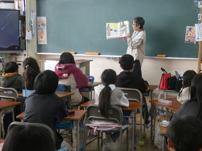 2年生の教室では、図書委員の6年生による読み聞かせがありました。
