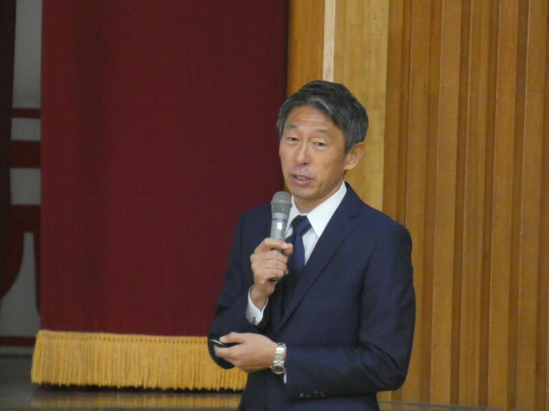 その後、職員による授業研究会が開かれ、学力向上コーディネーターの山口先生から大変貴重な話を聞かせていただきました。