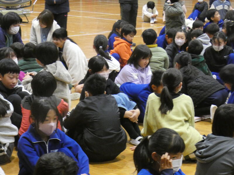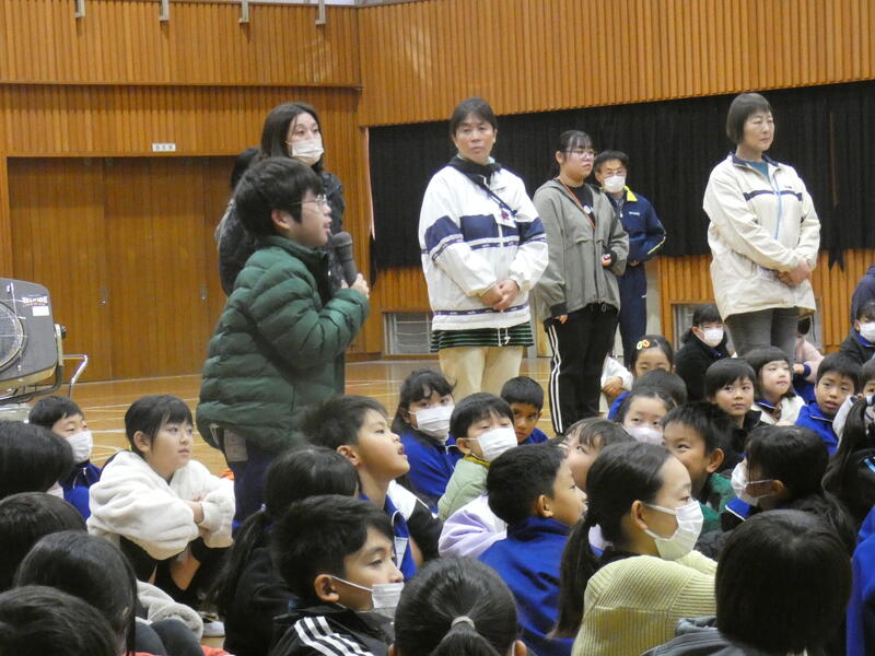 夏の暑い時期に一度来校され、6年生によるワークショップを行いましたが、その6年生達がオープニングに出演しての講演です。