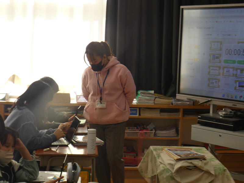 今日の先生はJETの関先生ではなく、1年生担任の松村先生です。