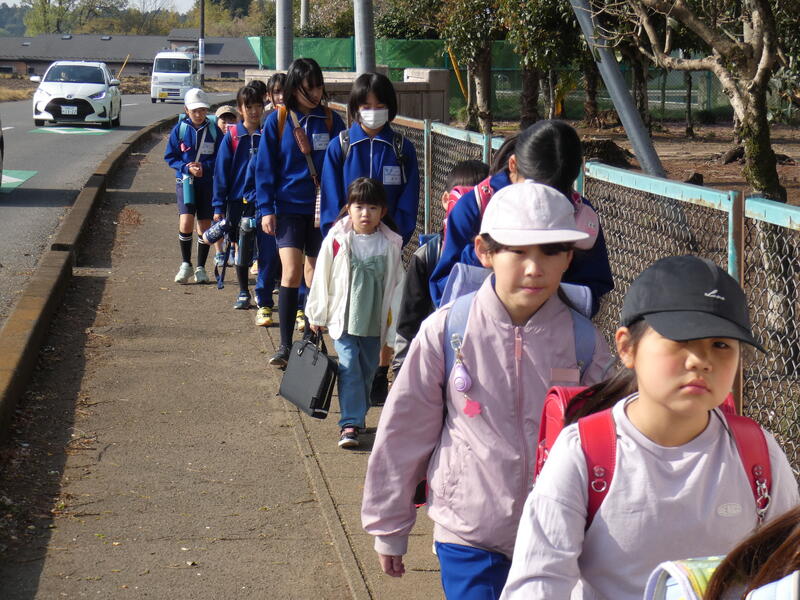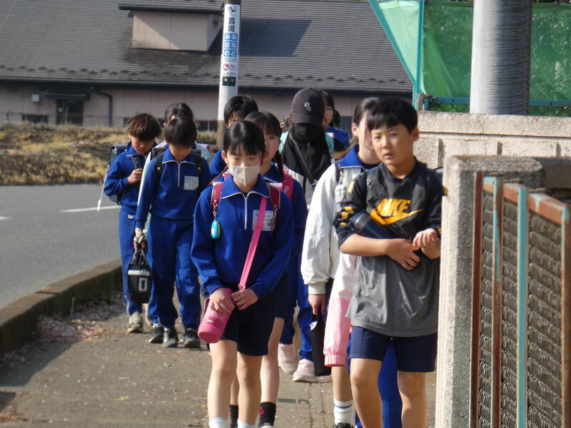 朝の登校の様子です。昨年同様、1年生の歩み合わせて、班長さんを先頭に、ゆっくりとした歩調で登校しています。