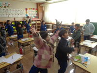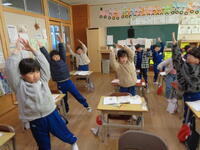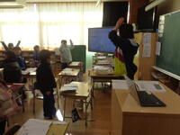 ★1年1組「国語」では、詩の内容に合わせて元気に身体を動かしていました。