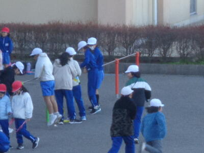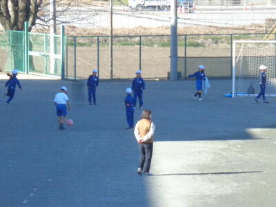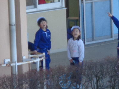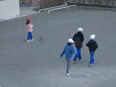★昨日に引き続き、今日も朝からすっきりと晴れ渡りました。お日様が顔を出しているとは言え、気温はやっぱり低めです。子供たちはそんな寒さに負けることなく、友だちと元気いっぱい楽しそうに遊びまわっていました(#^.^#)。