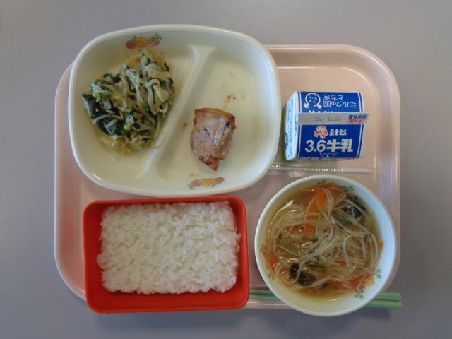 ごはん 牛乳 鶏肉の香味焼き もやしナムル 汁ビーフン