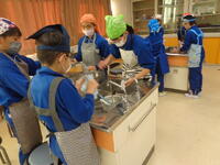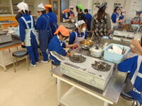 ★5年2組(家庭科)では、ボランティアさんにも手伝っていただきながら、とても楽しそうに「調理実習」に臨んでいました。