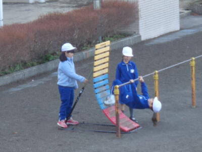 ★昨日に引き続き、朝からすっきりと晴れ渡りました。気温は低めですがお日様が顔を出しているせいか、この時刻でもそんなに寒くは感じません。子供たちは、友だちと元気いっぱい楽しそうに遊びまわっていました(#^.^#)。