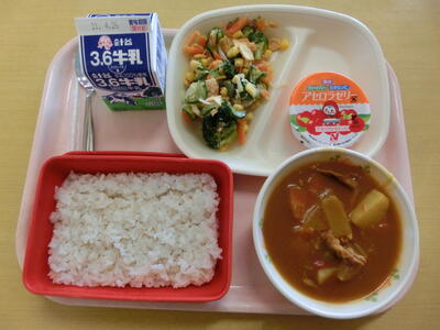 カレーライス(麦ごはん)・牛乳・スイートコーンのサラダ・アセロラゼリー