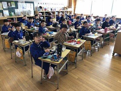 ごはん、牛乳、みそカツ(愛知県の郷土料理)、梅かつお和え、ゆば入り吉野汁
