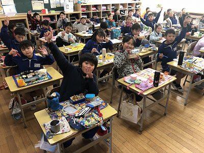 ごはん、牛乳、お星さまハンバーグ和風ソース、野菜いっぱいサラダ、雪だるまの春雨スープ
