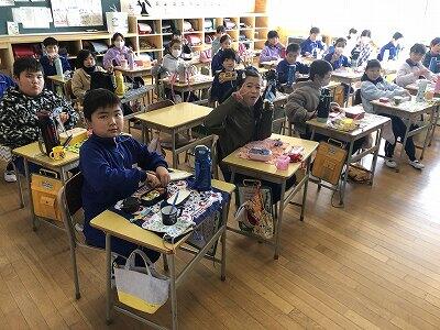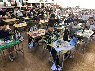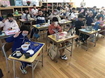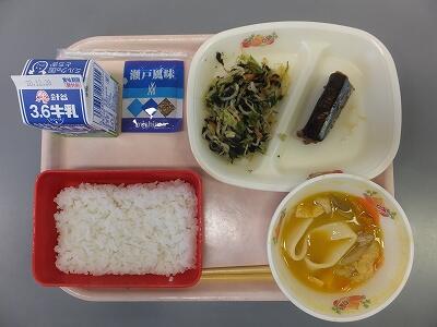ごはん、牛乳、瀬戸風味、さんまの梅煮、磯香和え、ほうとう汁