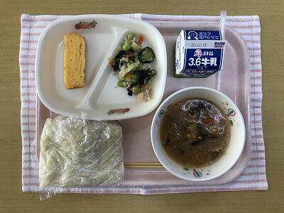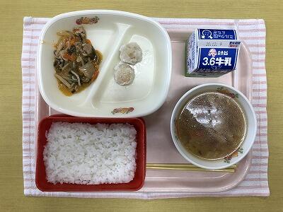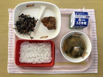 ごはん、牛乳、鶏肉の朝鮮焼き、ひじきの五目炒り煮、実だくさん汁