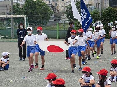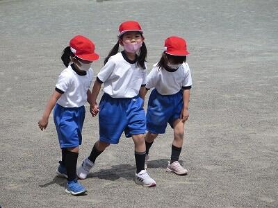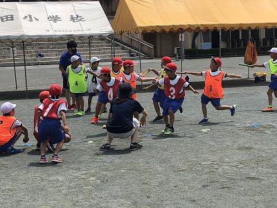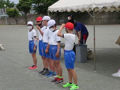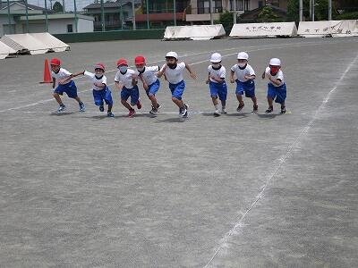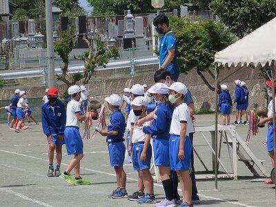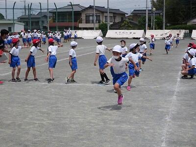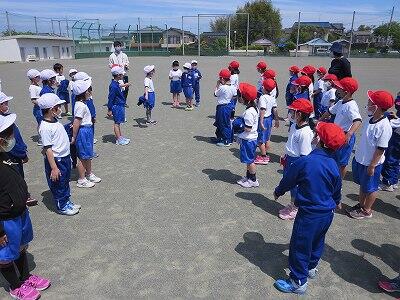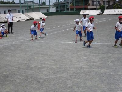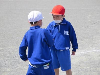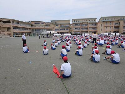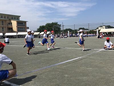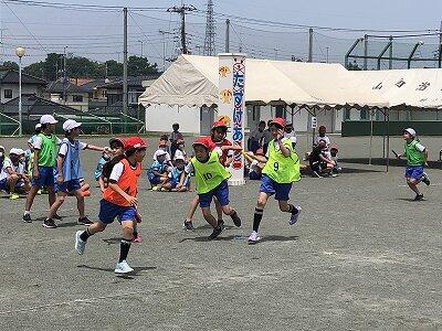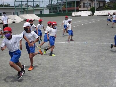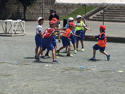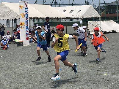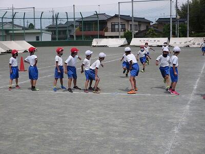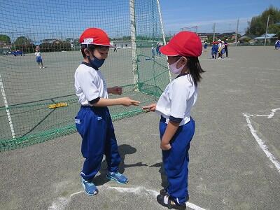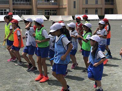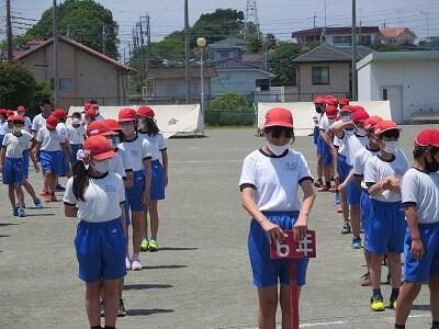 5月28日、明日の運動会を控え、紅白リレーの練習が行われました。