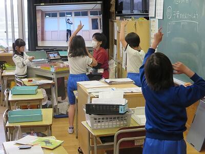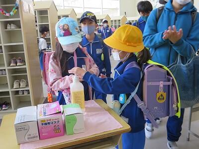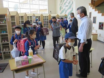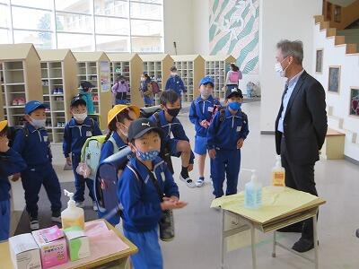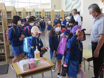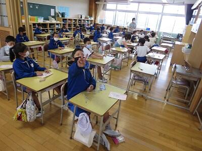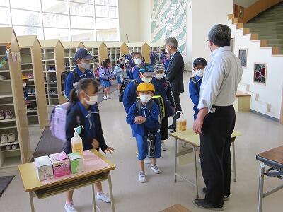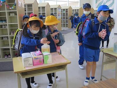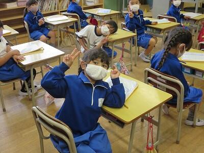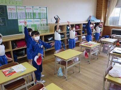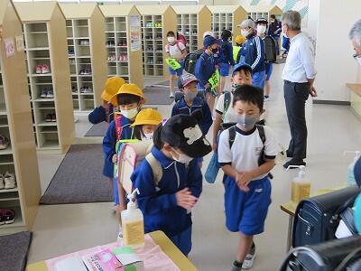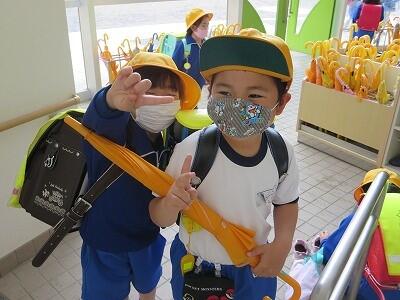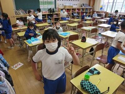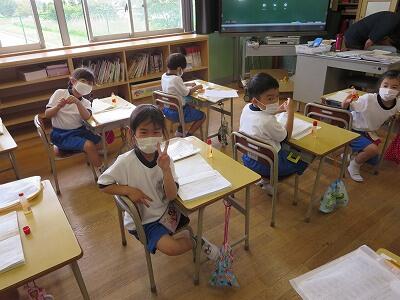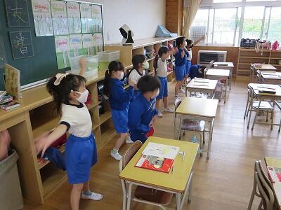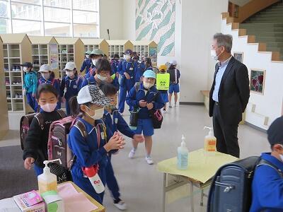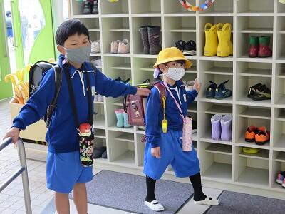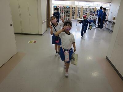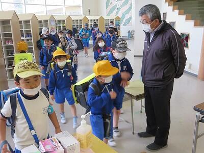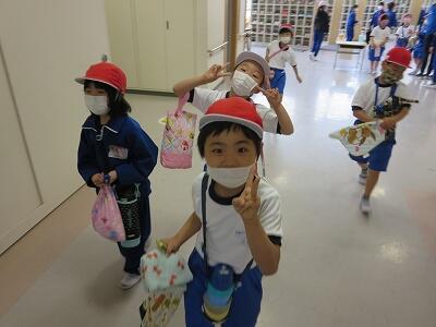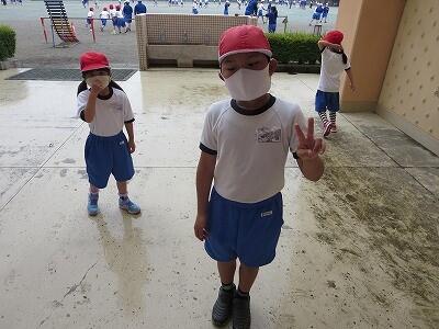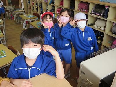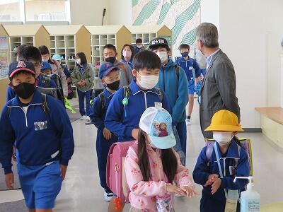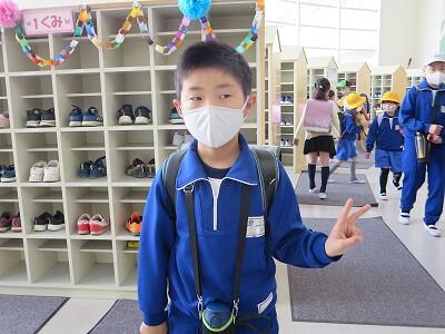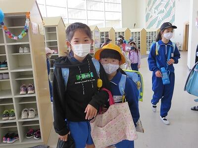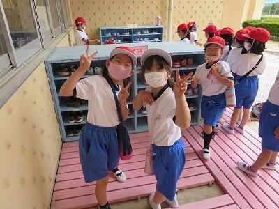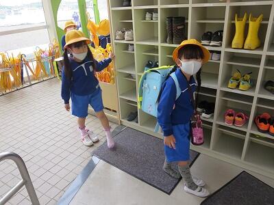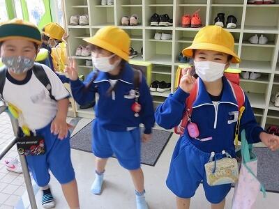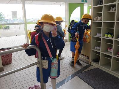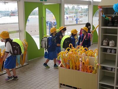 あいにくの天候でしたが、今日も、久下田小学校の子どもたちは元気です。
