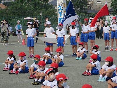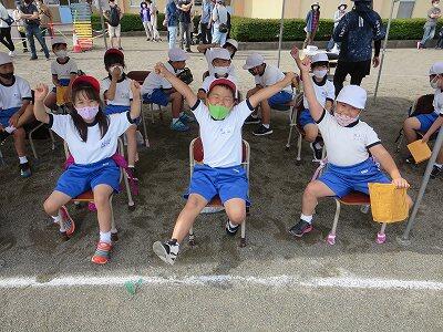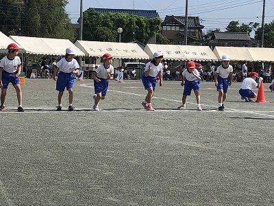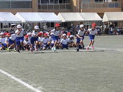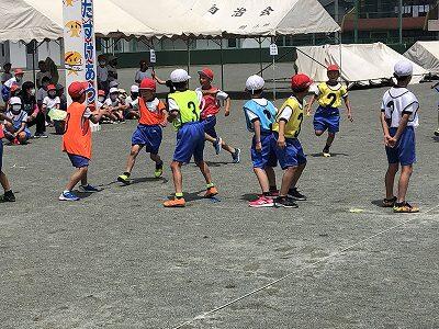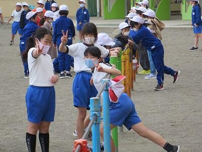 1・2年生の団体競技「ワッショイ!だるまさん」です。