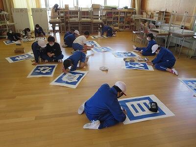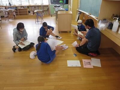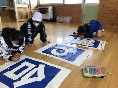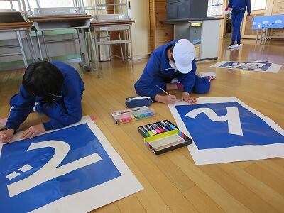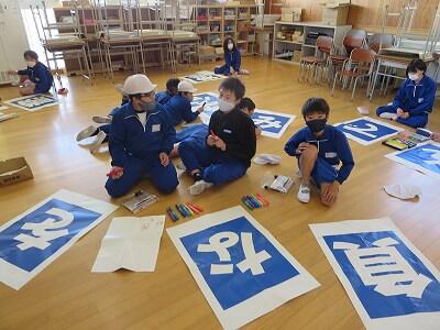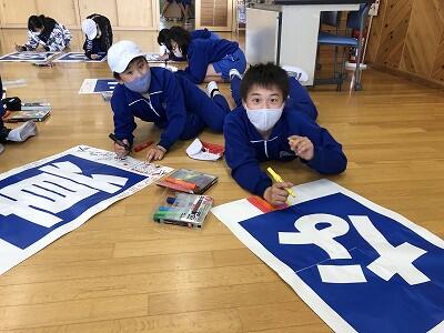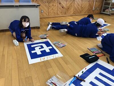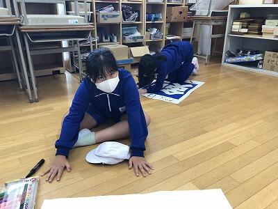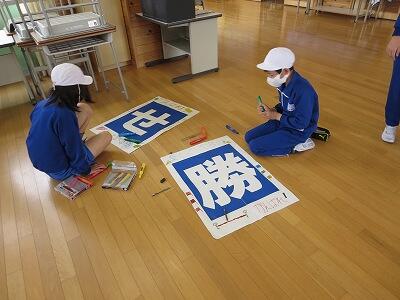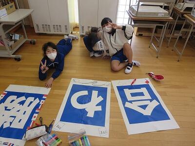 スローガンづくりをしている運動会実行委員の皆さんです。