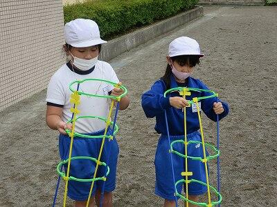 5月6日、2年生の生活科の授業で「1年生と遊ぶ会」を行いました。