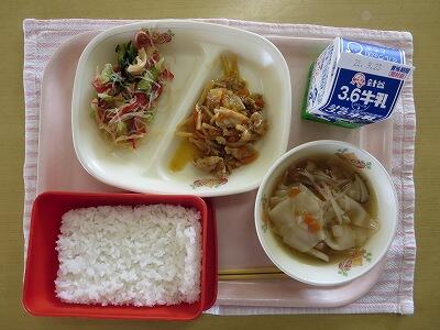 ごはん、瀬戸風味、牛乳、ポークシューマイ2ケ、わかめサラダ、えのき入り卵スープ