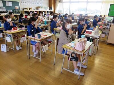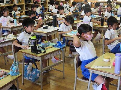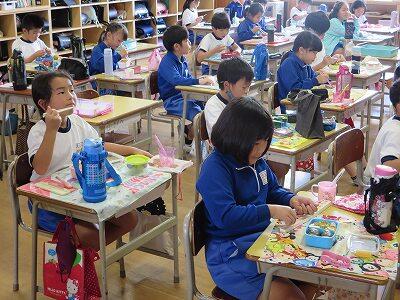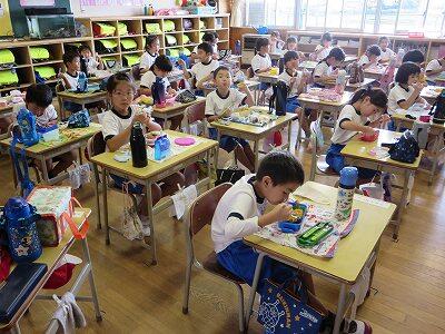 ごはん、牛乳、真鯛の香味ソースかけ、磯香和え、ゆばのみそ汁