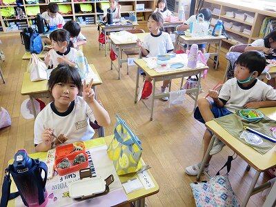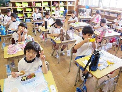 コッペパン、牛乳、マーガリン&イチゴジャム、はちみつレモンゼリー
