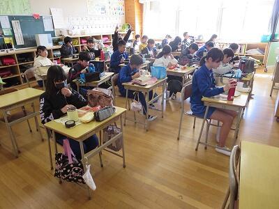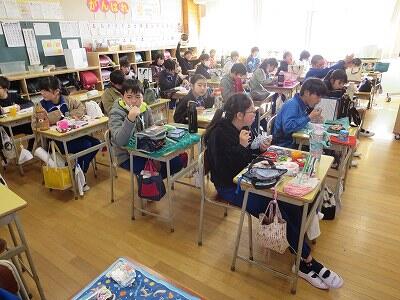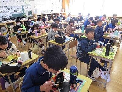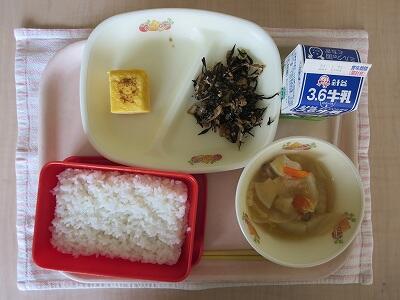 ごはん、牛乳、とちまる君の厚焼き玉子、ひじきの五目炒り煮、けんちん汁