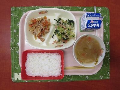 豚カルビ丼、牛乳、ほうれん草のさっぱり和え、冬野菜のみそ汁