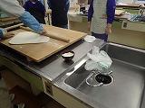今日は、講師の先生をお招きして、「うどん打ち教室」でした。作る量は、一人あたりうどん粉500グラム、約4人前です。左写真は、丸めたうどん粉を足で踏んで伸ばしているところ。腰が出るようにがんばりました。麺棒を使って伸ばし方を教えてもらっています(中写真)。後片付けも協力してしっかりやりました。最後に食事会でしたが、自分の力ですべて作ったうどんの味は格別だったようです。家族へのお土産もでできました。