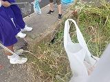 梅雨の晴れ間の強烈な日差しの中のごみ拾いでしたが、子どもたちは元気に小さな社会貢献ができました。写真は、用水路の周りのごみを拾っているところです。