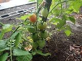 となりのミニトマトもオレンジ色に色づいてきて(右写真)、もうじき食べられそうです。