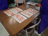 子どもたちは、自分が選んだ好きな言葉を10枚以上も書きました(右写真)。その中から、気に入った作品を2枚選んで、名前を書きました。