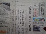 昨日、8/19(日)の朝日新聞の第1面(他面にも関連記事)に「学校に行くのが、つらい時は」という見出しの記事が掲載されました。その中に子ども(小中高生)の自殺が1年間で最も多いのは、8月下旬から9月上旬である、という内容もありました。