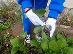 「ライブリー農園」の大根とアスパラ菜の2回目の間引きのです。大根は葉っぱが30センチほどに成長しましたが、肝心の根はご覧の通りまだまだやせっぽちです。この間引きで、太くおおきくなってくれればと願っています。