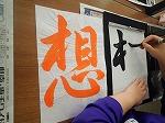今日は、ボランティアの先生に教えていただく「第6回書道教室」です。前回は、4文字の書を書いたのですが、今日は半紙1枚に大きく一文字です。4文字から1文字なので、「簡単かな?」などと思いきや、さにあらず。 「1文字は、難しい!」のです。