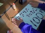 新しい友だちも増えました。今日の午後の活動は、子どもたちそれぞれが自分の取り組んでいる活動を行いました。「篆刻」(左写真)は、仕上げの研磨剤での磨きです。「木工」(中写真)は釘を使っての組み立てです。厚さ12ミリの板に長さ30ミリの釘をまっすぐに打ち付けるのは、とても難しいです。そして、「花ふきん」(右写真)は、今日が初めての製作です。他に実力テストを受験した生徒もいます。