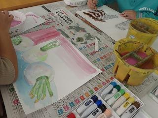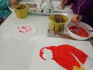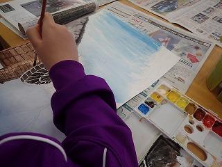 ボランティアの先生に教えていただく「絵画教室」の8回目です。2月の作品展に向けて、制作をスピードアップ。今日は、休み時間なしで、子どもたちもがんばりました。
