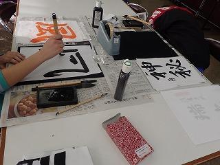 ボランティアの先生の教えていただく8回目の書道教室です。今までの半紙から今月と来月は、「条幅」に挑戦です。心地よい緊張感の中で、子どもたちは筆を動かしていました。