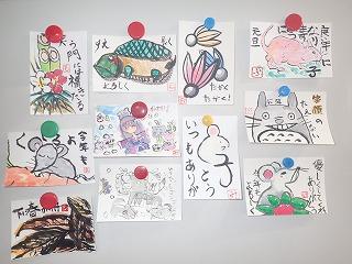 ボランティアの先生に教えていただく「絵手紙教室」の2回目、今回のテーマは、年賀状です。