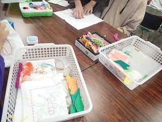 ボランティアの先生に教えていただく8回目の「手芸教室」です。「花ふきん」や「毛糸の手編み」「機織りコースター」などそれぞれの作品づくりを行いました。真剣にそして楽しく取り組めました。