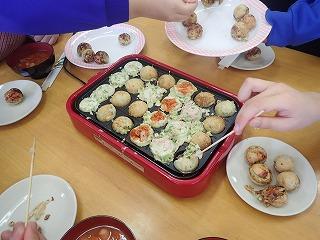 12月の調理教室をクリスマス会を兼ねて行いました。献立は、ミネストローネ(トマトと野菜のスープ)とたこ焼きです。