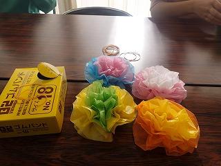 午後の活動では、昨日に引き続き作品の制作と、作品展看板の飾り花を作りました。