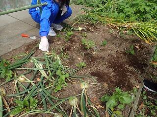 昨日の農園活動の様子です。秋に苗を植えたタマネギを収穫しました。少々小玉ではありますが立派なタマネギができたので、調理教室で子どもたちと食べたいと思います。その後、トマトやピーマンなどの野菜とマリーゴールドなどの草花を植えました。