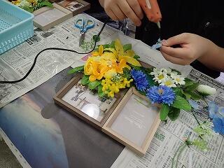 昨日の活動報告です。ボランティアの先生に教えていただき「フラワーアレンジメント教室」を実施しました。