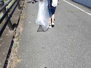 外はものすごい暑さでしたが、第3回目の奉仕活動(ゴミ拾い)を行いました。帽子をかぶり、水筒とタオル、それにゴミ袋と火ばさみを持って、五行川周辺のゴミを拾いました。途中、近隣の方から「お世話になります」と感謝の声をかけていただき、子どもたちもうれしかったと思います。