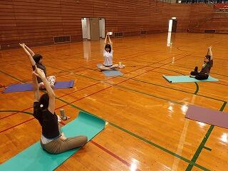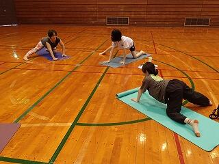 市総合体育館でヨガ教室を実施しました。中村先生を講師にお迎えしてご指導いただきました。今日は人数が少なかったので、少し難しいポーズを、時間をかけて丁寧に教えていただきました。できないと思っていたポーズも、こつを教えていただき、少しずつできるようになって達成感を感じることができました。