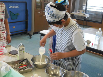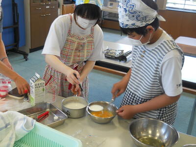 今日は午前中から教室の中でプリン作りを行いました。