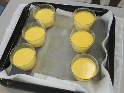 レシピを見ながら、新しいオーブンを使ってプリン作りにチャレンジしました。