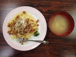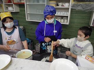 調理教室を実施しました。メニューはスパゲティボロネーゼとオニオンスープです。ボロネーゼを作るグループとオニオンスープを作るグループに分かれて調理を進めました。部屋の中がおいしそうな香りで満たされ、どんな味に仕上がるか期待を膨らませながら調理しました。とてもおいしくできあがり、おなかいっぱい食べました。