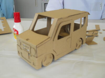 ダンボールでできた車のキットを使って、自分の手でものを作る楽しさを体感してほしいと岸先生からもありました。