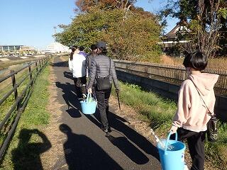 奉仕活動を行いました。五行川沿いを歩き、ロの町公園までゴミ拾いをしました。たばこの吸い殻やペットボトルがたくさん落ちていました。3つのバケツがゴミでいっぱいになり、川沿いのゴミの多さにびっくりしていました。