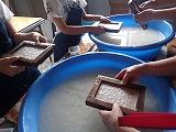 和紙すきをしてハガキの大きさの紙すきを体験しました。