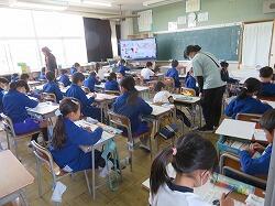1年生の廊下に、かわいらしい作品が飾ってありました。